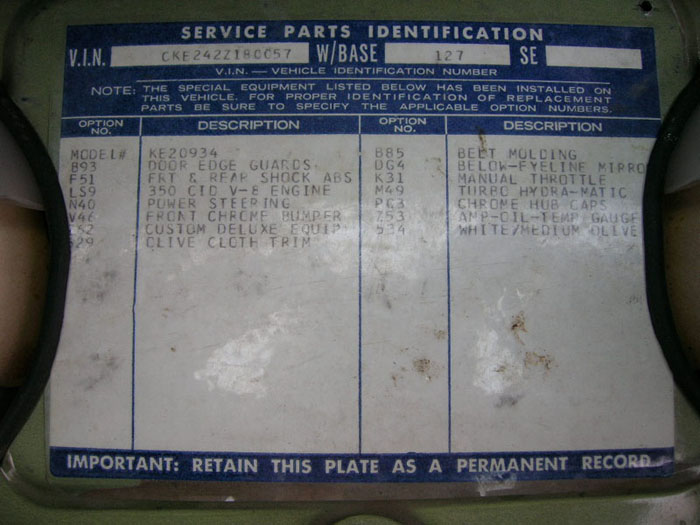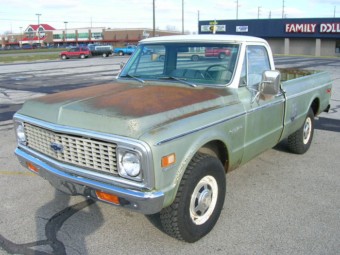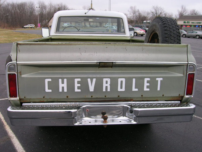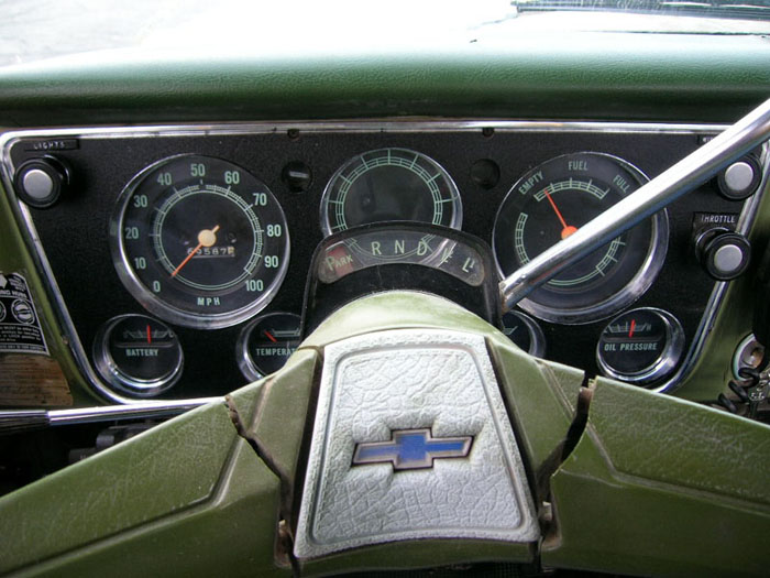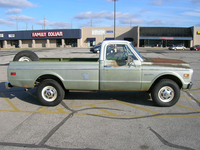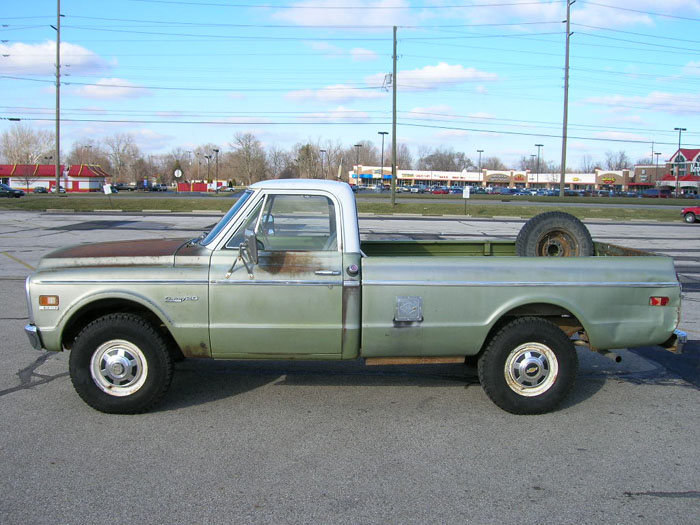 This is a very original one family owned 1972 K20 3/4 ton factory 4×4. This 4×4 is 98% rustfree. It was built in Freemont California and has spent it’s entire life out west. It is one of the nicest driving 4×4 I have had. It sure drives like the 69k is actual. It was used mostly for hunting in Wyoming. This 4×4 features the higher level “Custom Deluxe” trim package. The original matching #’s 350 runs perfect with no smoke or noises. The automatic choke even works. The 4×4 also has a nice shifting automatic. The disc brakes and power steering work perfect. This truck doesn’t have a rattle in it. The dual exhaust, battery, and tires a new. This 4×4 would be a great choice for a cosmetic restoration. It drives too nice for a frame off restoration.