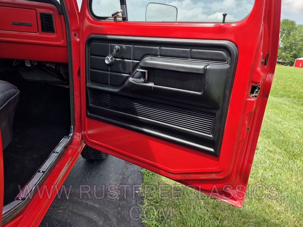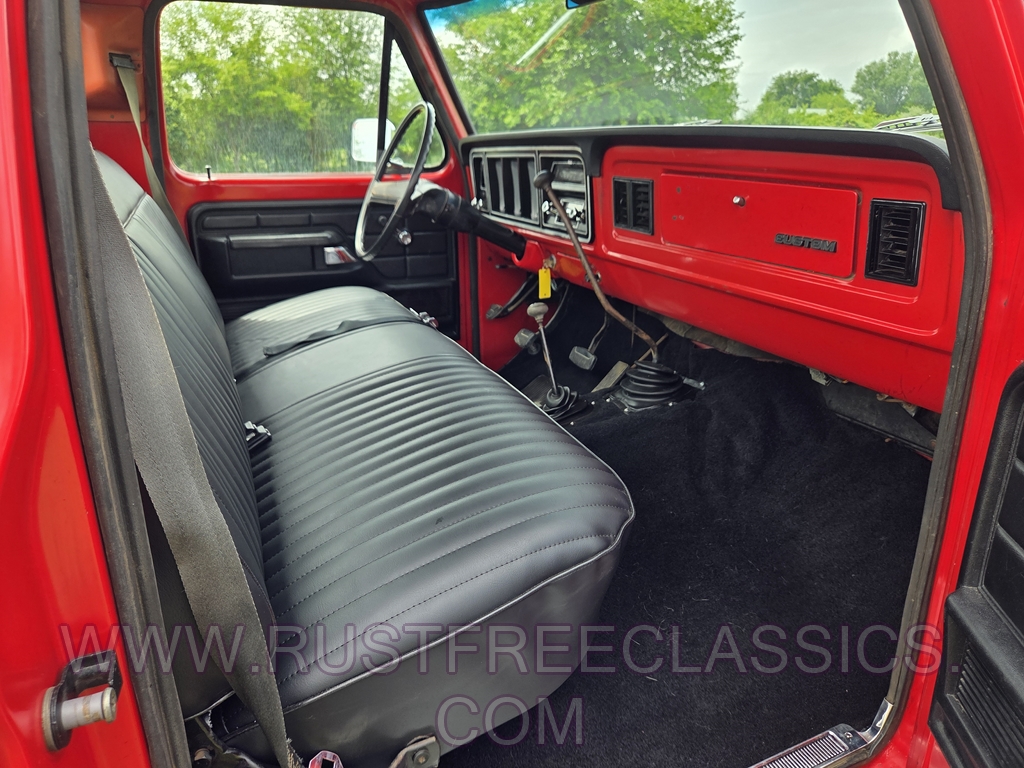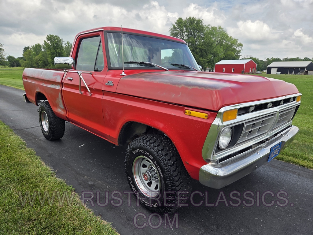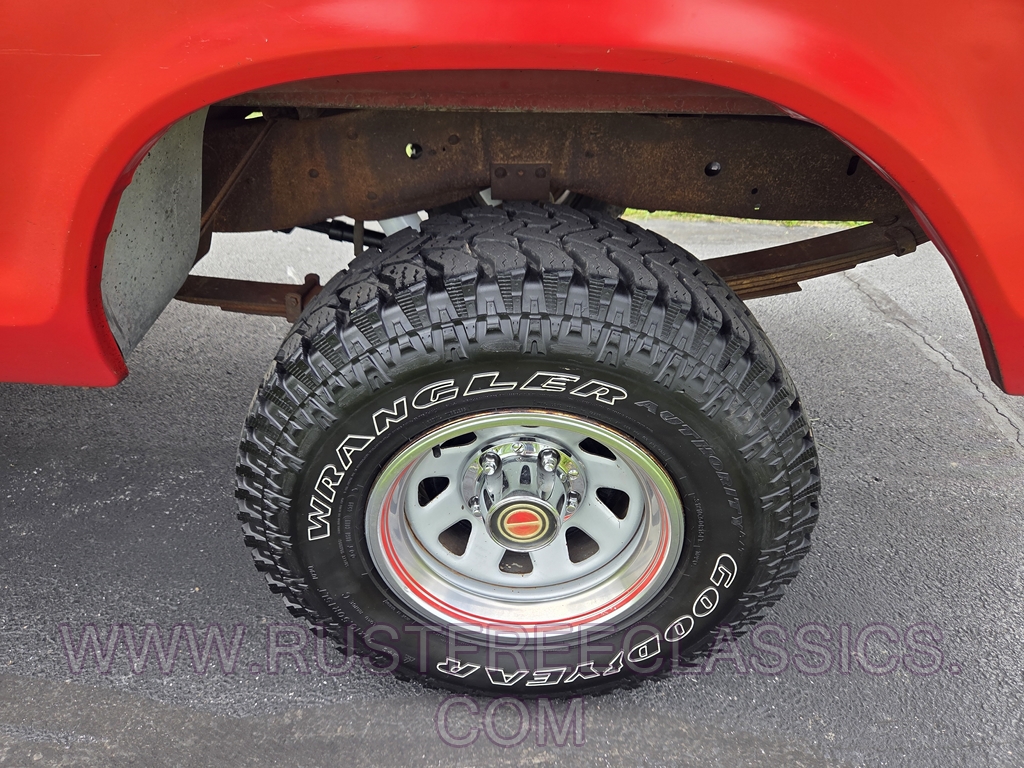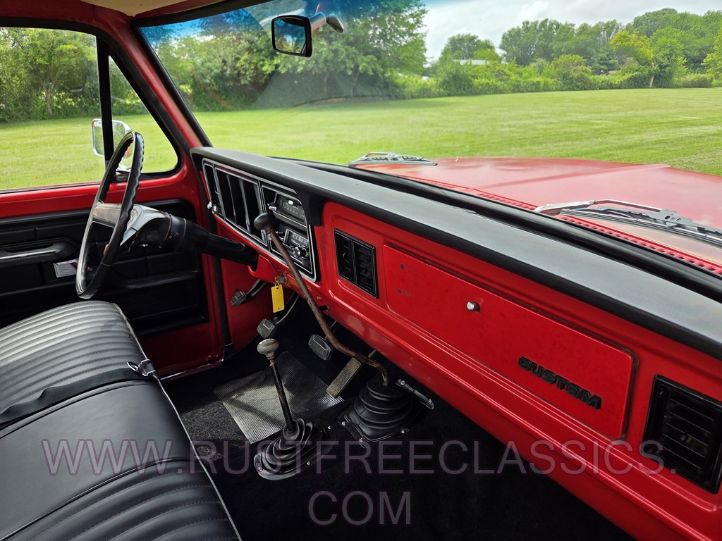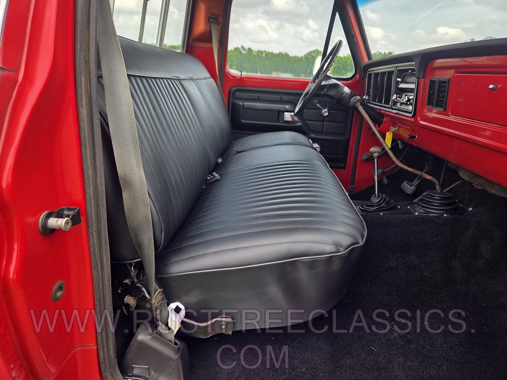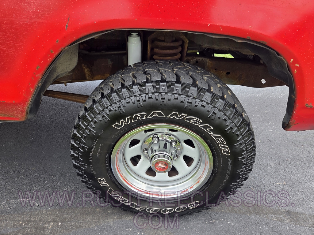 1977 F150 SWB 4×4. This is the “Custom” trim model and has just the right option: rebuilt 351, 4 speed, A/C, PS, and PDB. This truck is a nice stock original survivor that still has much of it’s original paint, and is 100% rust-free from California. It has nice Ford steel rally wheels with nice 31×10.5×15 Goodyear A/T tires. It also has conservative 3.50 gears, that make it drivable. It has nice sounding factory exhaust on it. It has a working factory AM/FM. The bed is straight inside , but does have surface rust, but no holes.