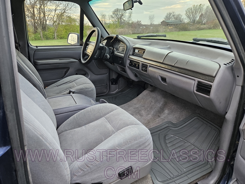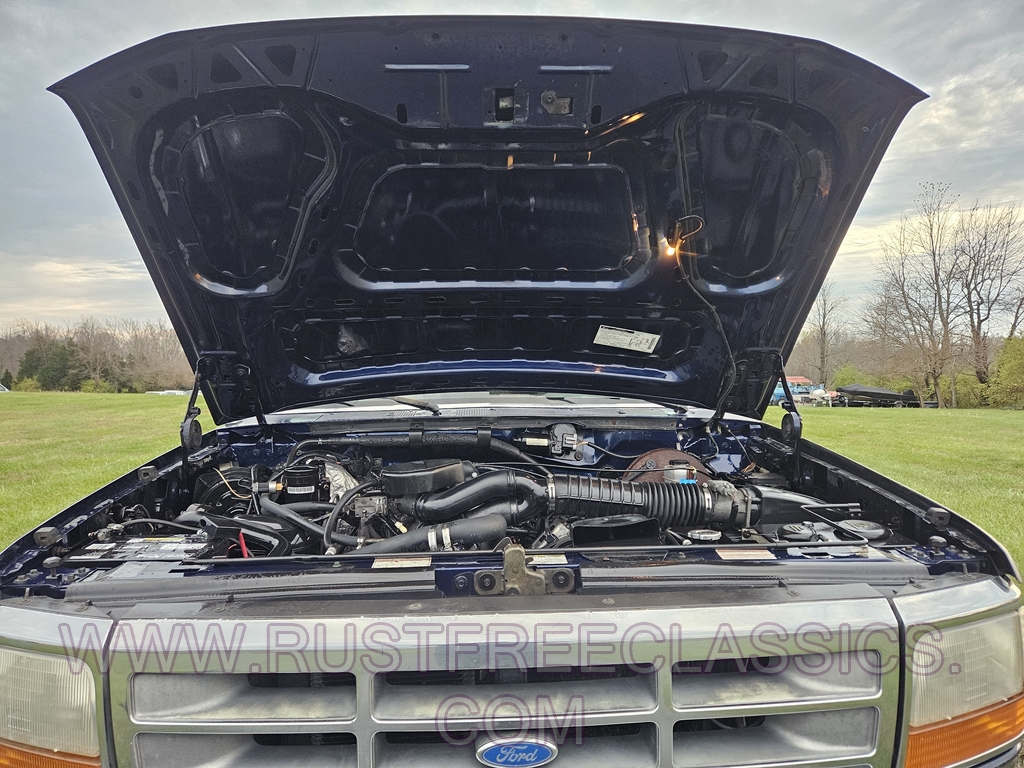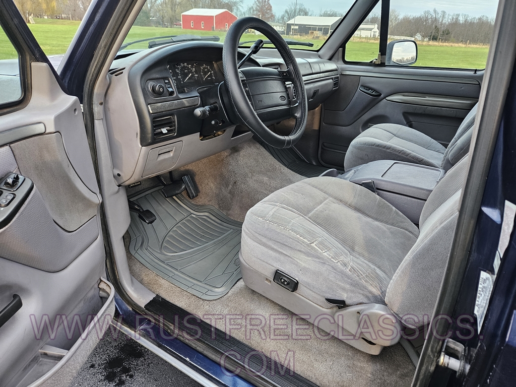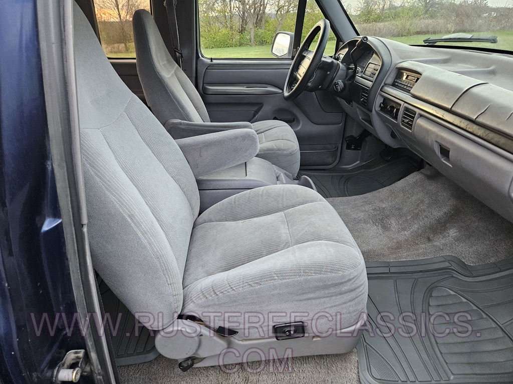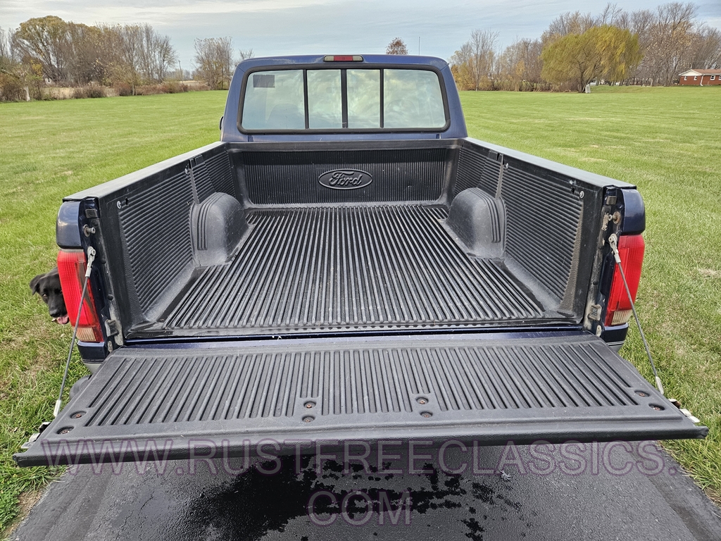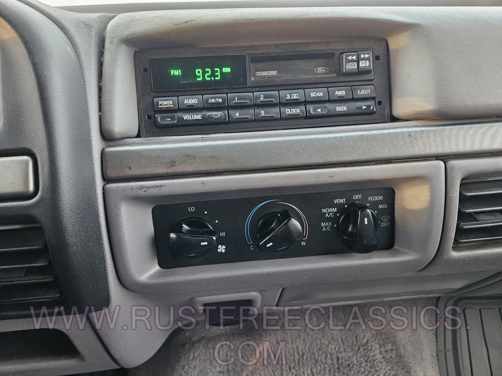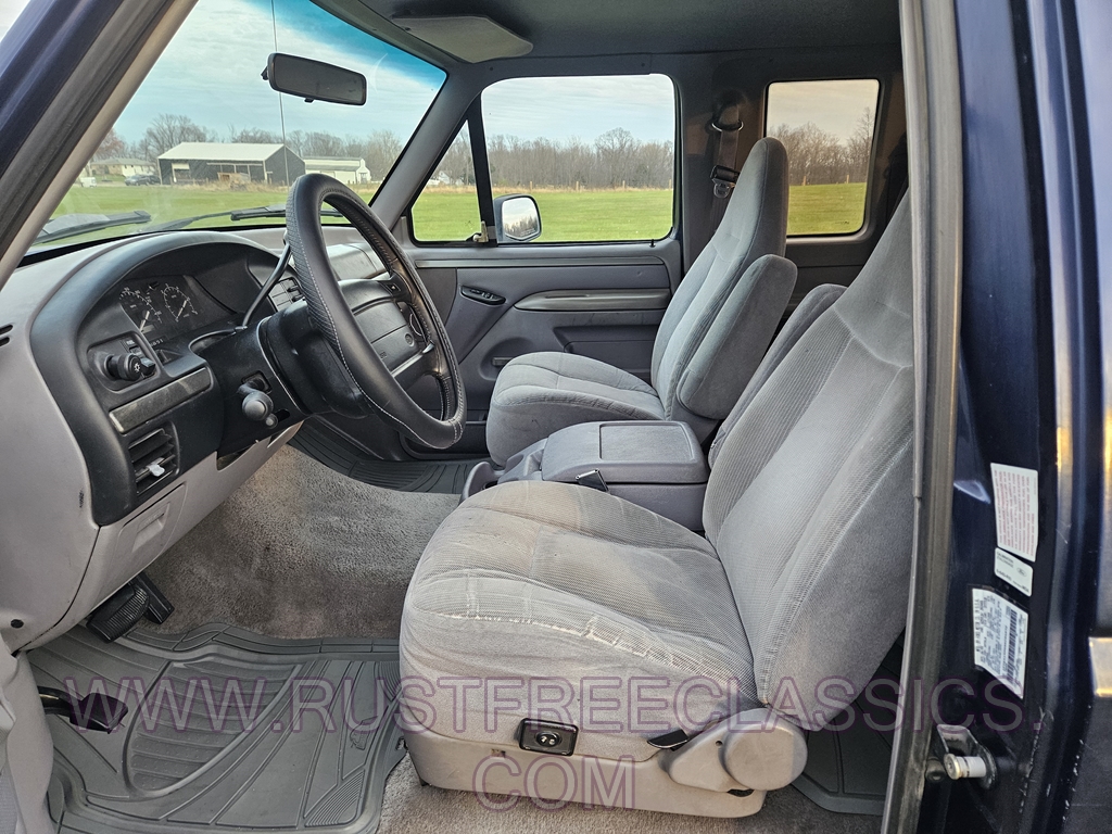 It has a clean interior, with the desirable front bucket seats. it also has a nice sounding factory stereo. The bed floor is excellent under the factory ford bed liner.