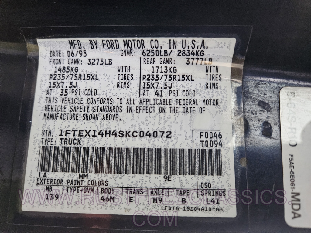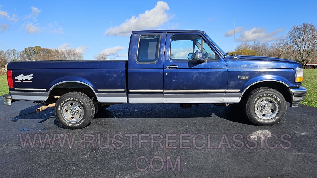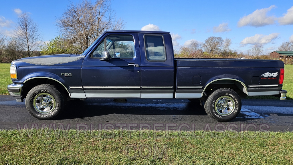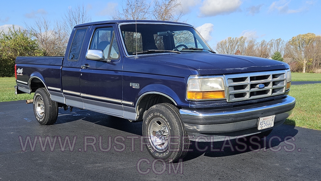 1995 F150 Short bed, extended cab, 4×4. The short bed extended cab 4×4’s were pretty rare in this era of truck, and are much more sporty looking than long beds. These were the last of the OBS Fords, and are still pretty simple to work on. Yet they have most of the comforts of new trucks. This one is a clean one family owned original survivor. It is 100% rustfree from California, and still has it’s original paint. It is fully loaded and features the fancy “XLT” trim. Other options include: a strong fuel injected 5.8L, nice shifting overdrive automatic, A/C, factory tach, PW, PDL, PS, PDB, tilt, cruise, dual tanks, power mirrors, factory Chrome wheels, etc. It has nice 3.55 gears with a limited slip “Posi” rear. It has the handy auto 4×4 system that works in all modes.
