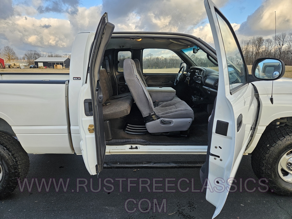 2000 Dodge SLT Laramie 4×4 Extended Cab 4 door short bed. The body is straight, with it’s original paint, and is 100% Rustfree from California. This is a fully loaded SLT model. Featuring the 360 Magnum, Overdrive A/T, PW, PDL, Anti-lock brakes, Tilt, Cruise, Power seat, Keyless Entry, Class III tow hitch, Skid Plates, 3.55 axles, with Dana 44 front, and Limited slip (Posi) rear, etc. It has nice cloth interior, with the factory CD player. It has had a bed liner since new, so the inside of the bed is excellent as well. The tires are still decent, and mounted on factory alloy wheels.